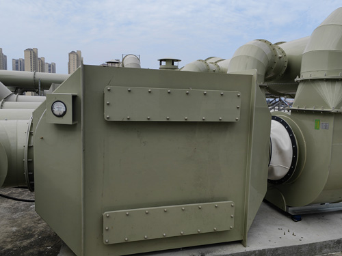 實驗報告室有機廢氣治理 → 抗逆性炭脫水器 → 引生產的風機 → 尾氣排放